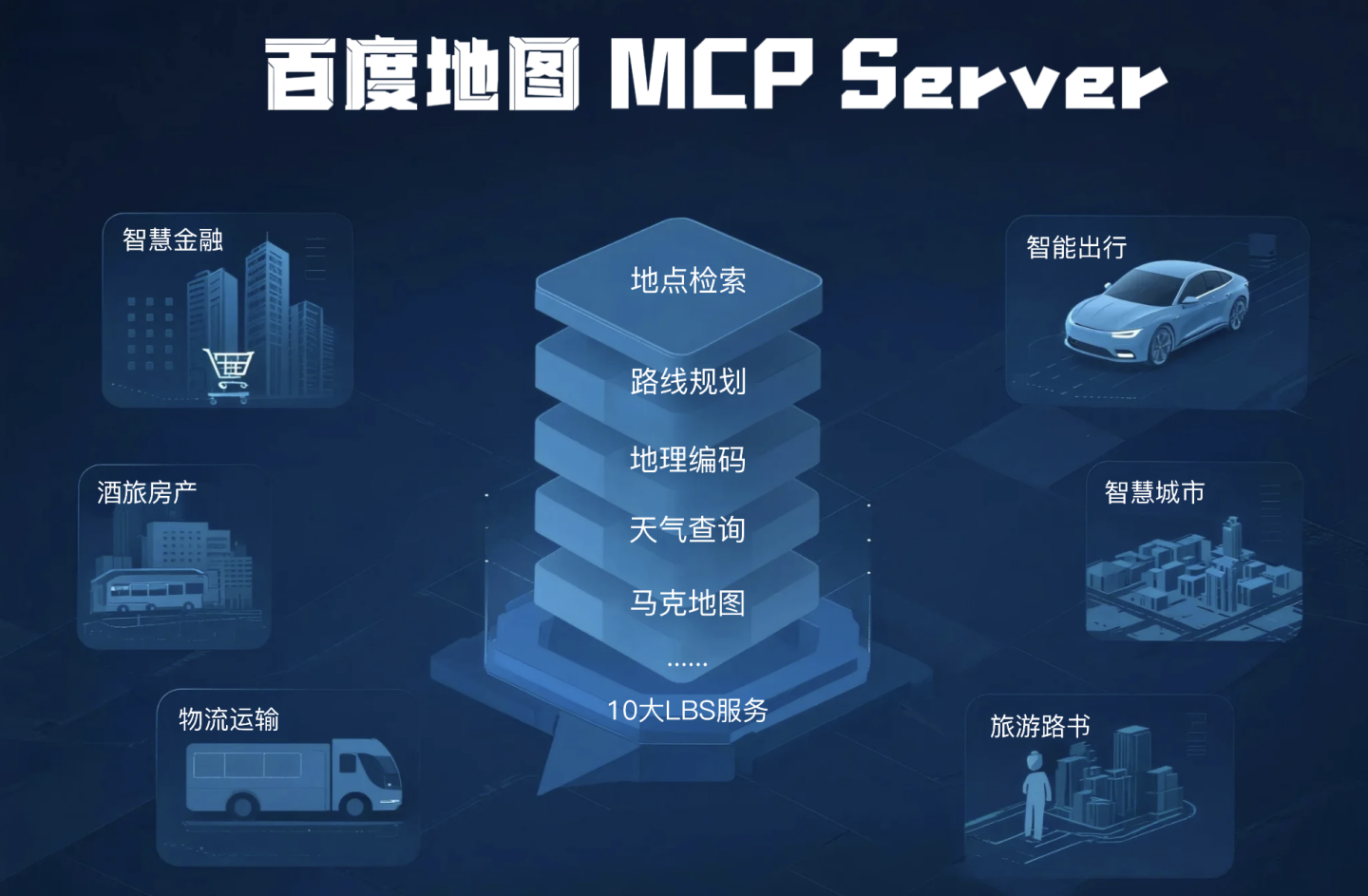 为了让用户的智能体或AI应用能够快速具备「地理出行相关领域」的能力,2025年3月,百度地图率先完成 10 大核心 API 与 MCP 协议的全面对接, MCP Server 将逆地理编码、地点检索、路线规划等核心能力标准化封装,成为国内首家兼容该协议的地图服务商。