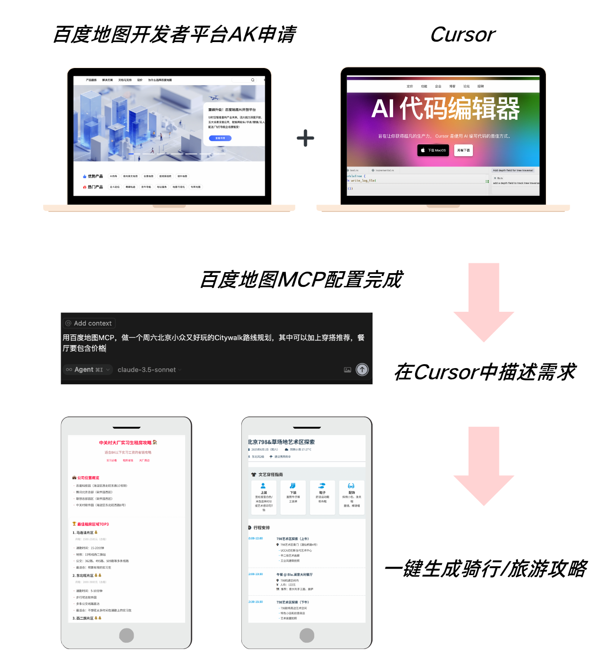 任意支持MCP协议的客户端(如Claude for Desktop、Cursor、Cherry Studio和Cline等)都可以简单且快速的接入百度地图MCP Server。