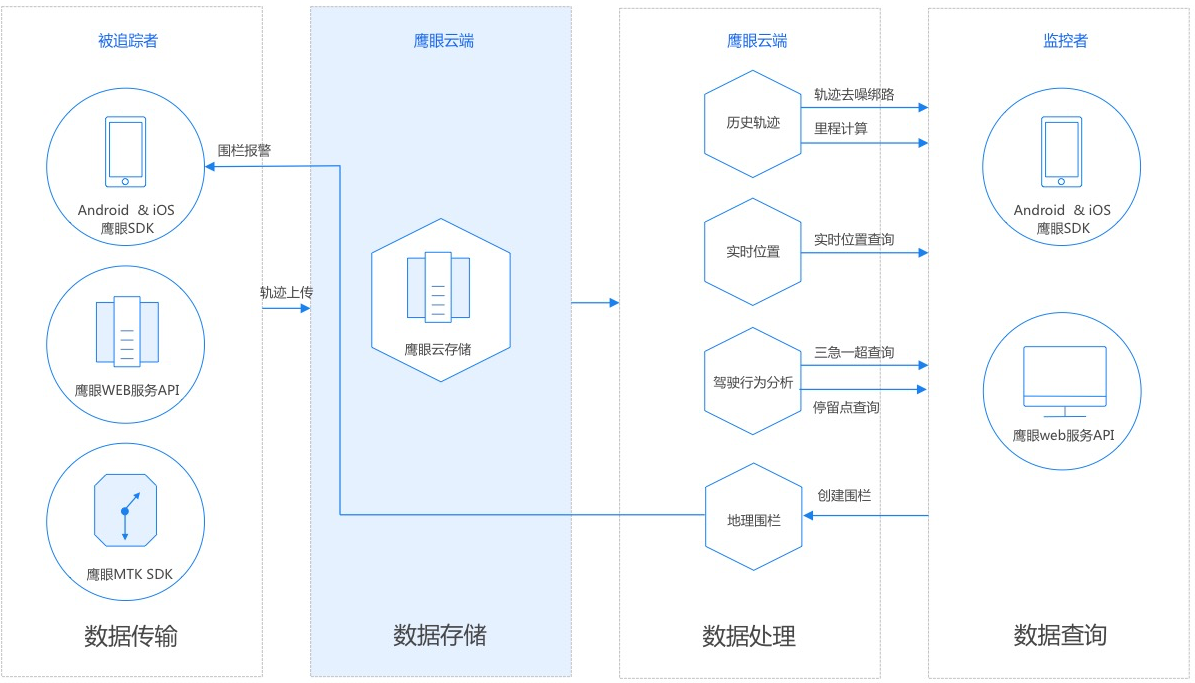 1. 鹰眼Web服务API:一套REST风格的API,以HTTP/HTTPS的形式提供了鹰眼所有功能,供开发者在服务端和非Android/iOS 平台上调用