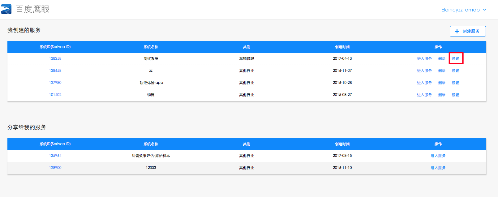 进入 鹰眼轨迹管理台,选中某个 service,点击"设置"